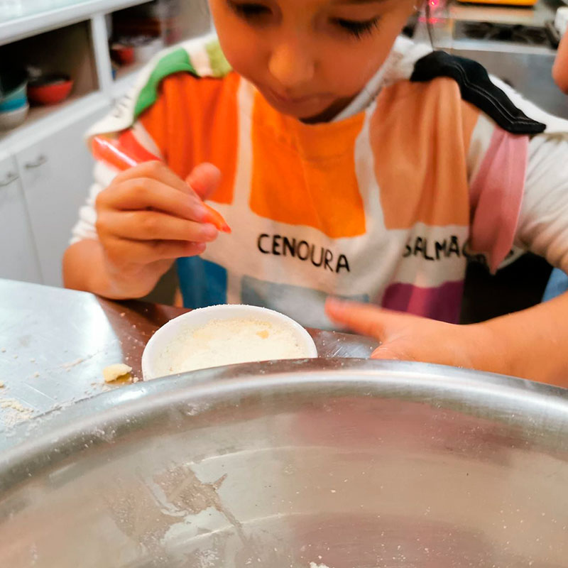Esta aula colocam as crianças frente a frente com noções de organização e receitas “de gente grande” com preparos simplificados.