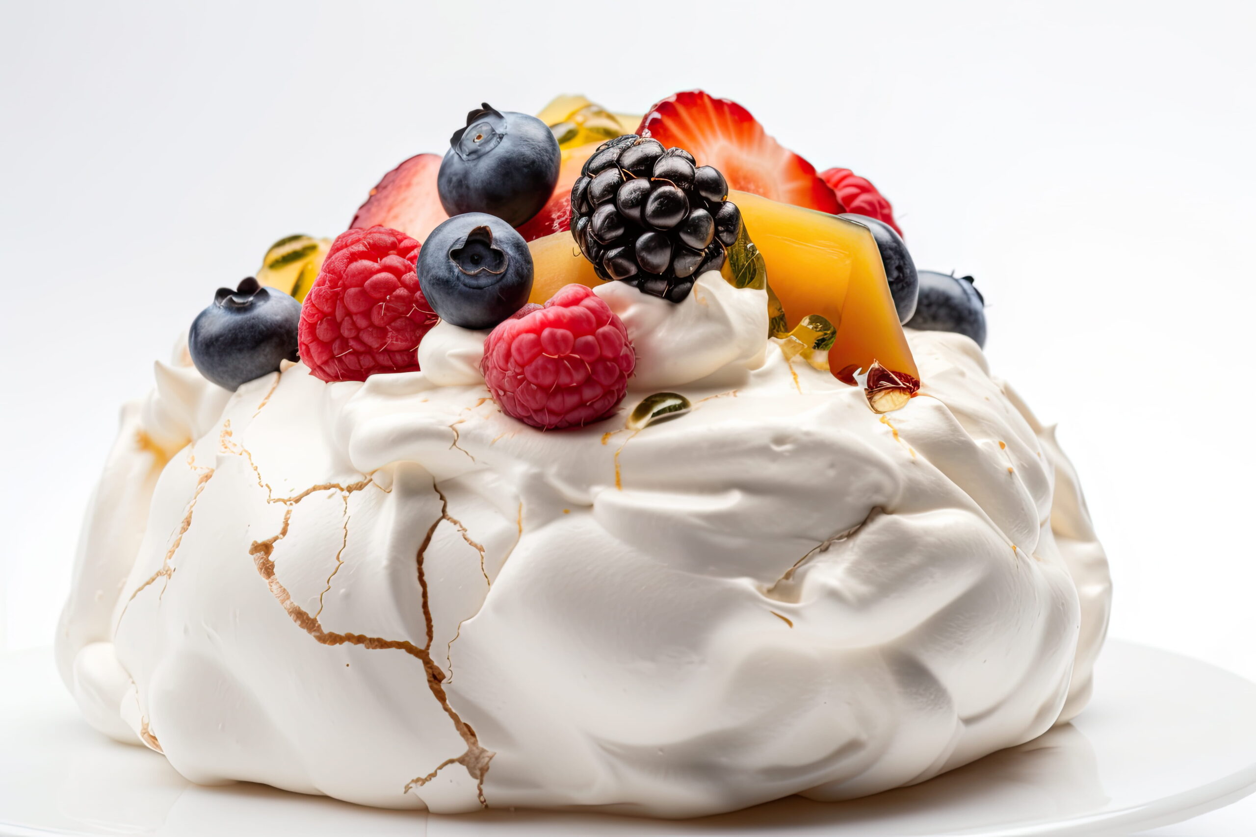 Merengue, creme e frutas.